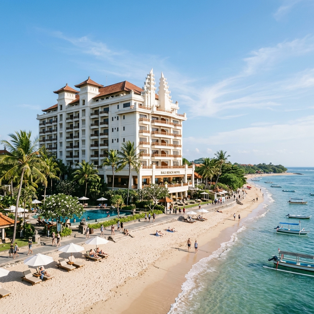 Hotel mewah bersejarah di tepi pantai Sanur, dengan suasana elegan, fasilitas lengkap, dan cocok untuk tamu yang menginginkan pengalaman menginap premium dekat area pelabuhan serta pantai.